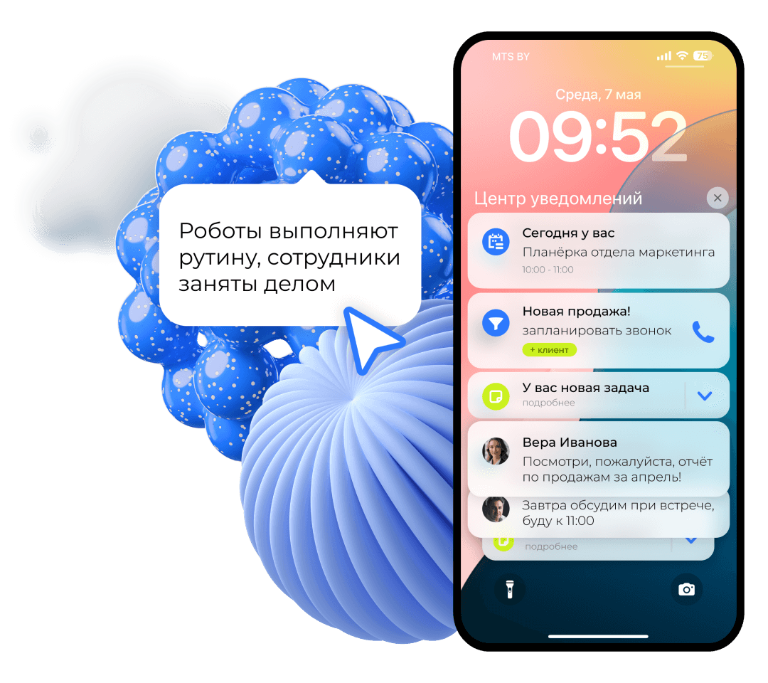 - роботы напоминают менеджерам взять сделку в работу, перезвонить клиенту, переводят клиента в нужную стадию, отправляют письма и смс, шлют уведомления об оплате